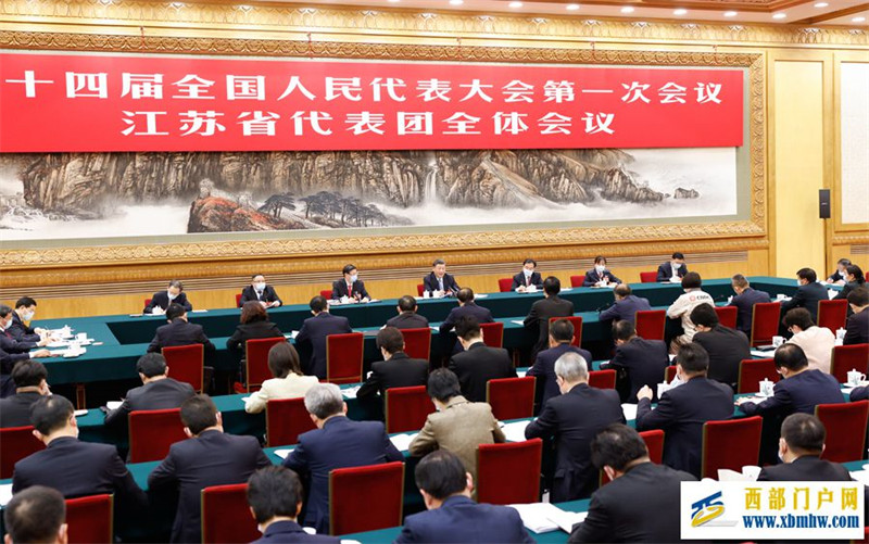 3月5日,中共中央总书记、国家主席、中央军委主席习近平参加他所在的十四届全国人大一次会议江苏代表团审议。